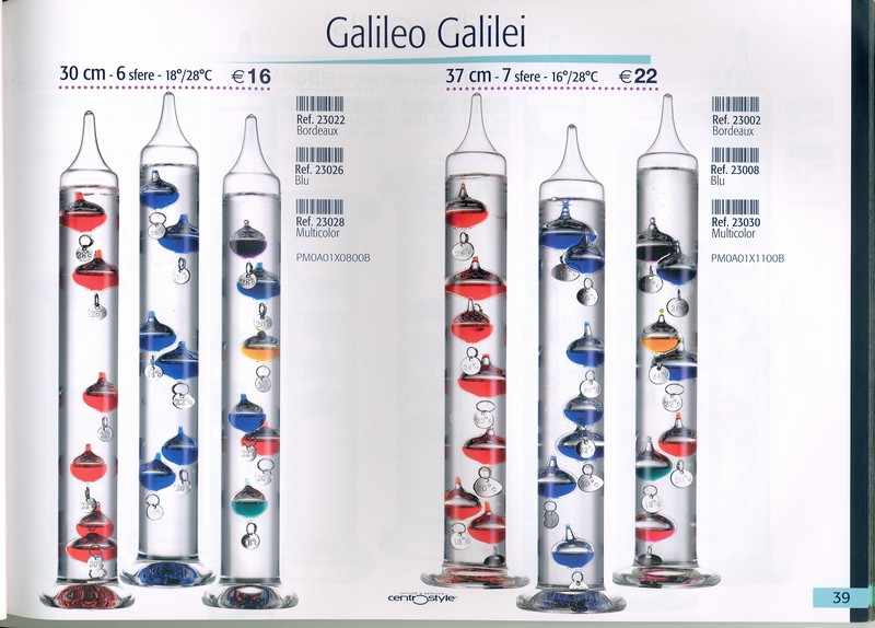 Desc. TERMOMETRO DA INTERNO GALILEANO Colore bordeax,blu,multicolor,oro,argento Mat. CRISTALLO Pz per conf.