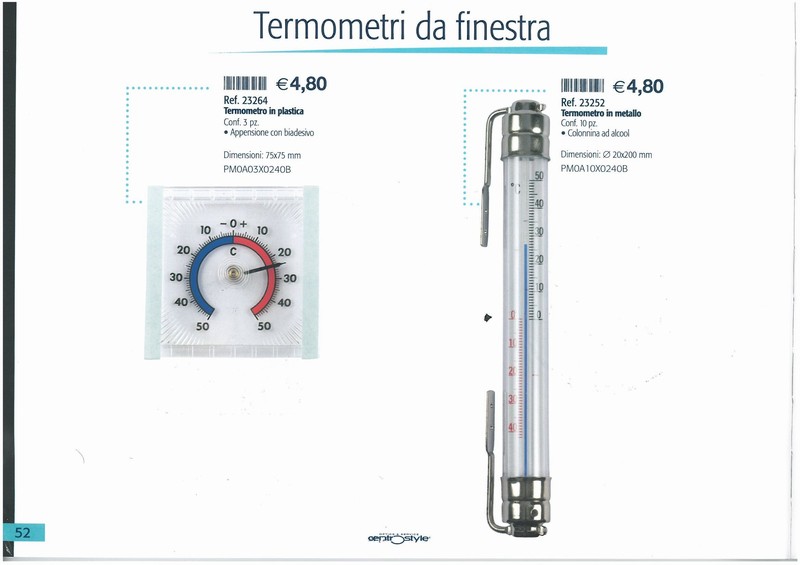 Desc. termometri per esterno attacco adesivo ed a tassello Colore trasparente